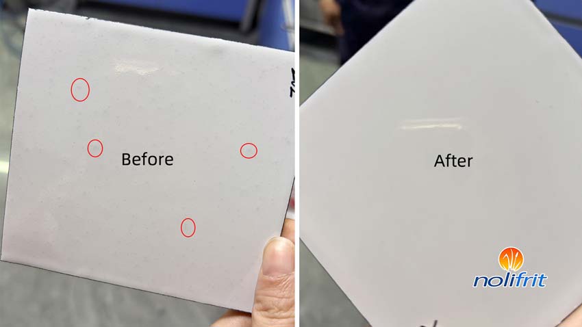After investigating the actual production conditions at the enamelware factory, Nolifrit's technical experts found that the core problem was concentrated on the discharge port cover of the large ball mill. If the cover is made of rubber or plastic, trace amounts of organic impurities are easily generated during ball milling. These impurities mix with the enamel and, after high-temperature sintering, form black spots. Therefore, it is recommended to replace these covers with ceramic or iron materials to reduce impurity generation at the source.