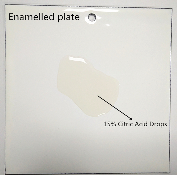 15% citric acid is used in this test. It’s reacted on the enamel coating surface and the result can be seen by virtual observation.