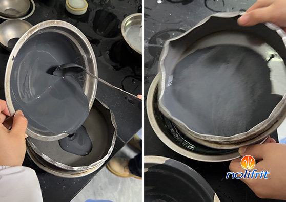 Even if the RTU enamel powder has already been dry-sieved to remove obvious coarse particles, a second sieving is still required after wet milling and wet mixing. This is because when the powder—typically produced from high-quality enamel frit supplier__ processes—contacts water, it can form agglomerates or lumps due to uneven water uptake or inadequate stirring. These lumps cannot be eliminated through dry sieving alone. Sieving helps disperse and remove these agglomerates, producing a more uniform particle distribution in the slurry. This ensures consistent enamel thickness during application and prevents firing defects such as warping or enamel cracking caused by local thickness variations.